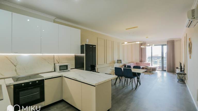 Das klimatisierte Apartment im Miku Apartment - Luxurious 2Bedroom At Olympic Residence bietet den Gästen ein komfortables und luxuriöses Ambiente. Mit 2 Schlafzimmern, einem geräumigen Wohnzimmer und einer voll ausgestatteten Küche mit Kühlschrank und Kaffeemaschine bietet das Apartment alles, was Sie für einen angenehmen Aufenthalt benötigen. Die beiden Badezimmer verfügen über ein Bidet und eine Dusche. Handtücher und Bettwäsche werden gestellt, um den Gästen den bestmöglichen Komfort zu bieten.