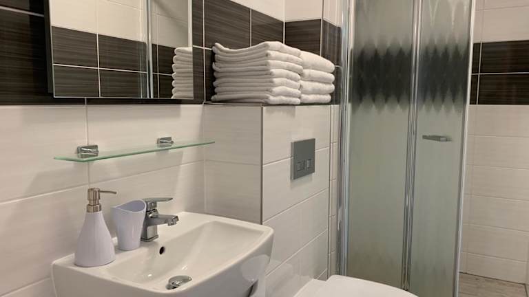 Die im Jahr 2019 erbaute Pension bietet moderne und komfortable Zimmer. Jedes Zimmer verfügt über ein eigenes Badezimmer mit kostenfreien Pflegeprodukten, einen Flachbild-TV und Klimaanlage. Ausgewählte Zimmer bieten zudem eine Terrasse, auf der Sie die frische Luft genießen können. Die Zimmer sind mit einem Schreibtisch und einer Kaffeemaschine ausgestattet, um Ihren Aufenthalt so angenehm wie möglich zu gestalten.
