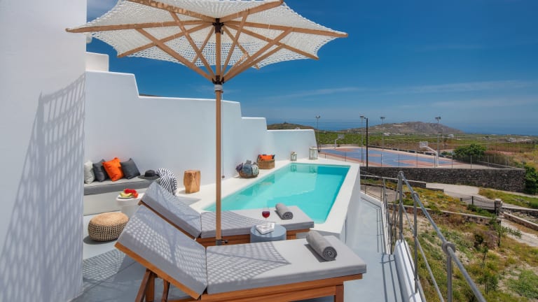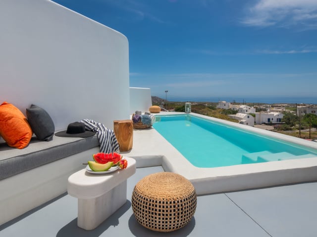 Die MILESTONE VILLAS bieten Ihnen verschiedene Möglichkeiten, Ihre Freizeit zu gestalten. Der ganzjährig geöffnete Außenpool lädt zu erfrischenden Schwimmrunden ein und der nahegelegene Strand Thermis bietet Möglichkeiten zum Sonnenbaden und Wassersport. Sie können auch einen Spaziergang durch das charmante Dorf Megalochori unternehmen und die traditionelle Architektur und die engen Gassen erkunden. Die Villen bieten auch eine Autovermietung, so dass Sie die Insel Santorin bequem erkunden können.