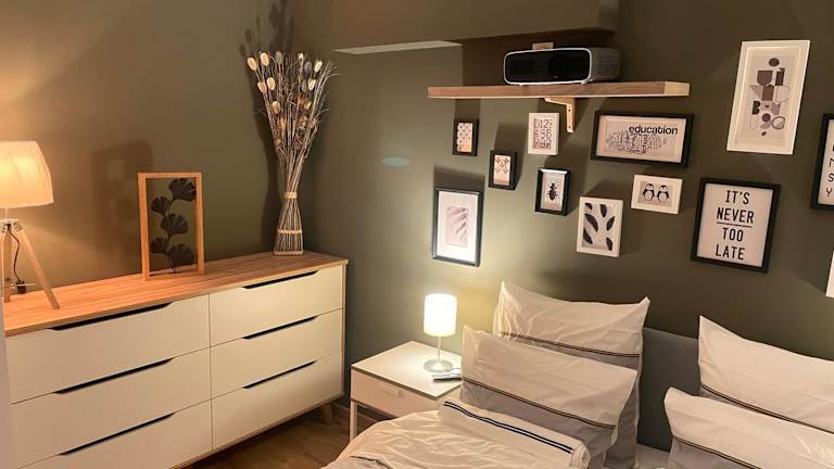 Die Ferienwohnung verfügt über ein Schlafzimmer, ein Wohnzimmer, einen Flachbild-TV und eine gut ausgestattete Küche mit Kühlschrank und Ofen. Ein Badezimmer mit Dusche ist ebenfalls vorhanden. Handtücher und Bettwäsche werden bereitgestellt. Die Anlage bietet schallisolierte Zimmer.