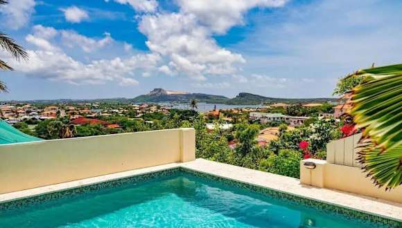 Million dollar view Spanish Hacienda Style Luxury Villa in Jan Thiel ist eine luxuriöse Villa im spanischen Hacienda-Stil, die durch einladende Außenbereiche besticht. Zu den Annehmlichkeiten gehören ein privater Außenpool, ein Garten und eine Terrasse sowie eine Bar.