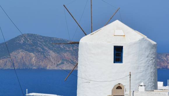 Das Milos Vaos Windmill aus dem 19. Jahrhundert liegt in Tripiti, einem charmanten Dorf oberhalb des Fischerdorfes Klima auf der Insel Milos. Es ist auch in der Nähe von Plaka, der malerischen Hauptstadt von Milos. Von hier aus haben Sie einen wunderbaren Blick auf die Ägäis und können die Schönheit der Sonnenuntergänge genießen. In unmittelbarer Nähe finden Sie Tavernen und Geschäfte, die zu einem gemütlichen Bummel einladen. Das Dorf Triovasalos und das antike Theater sind ebenfalls nur einen Kilometer entfernt. Der Hafen von Milos ist 4 km und der Strand Plathiena 3 km entfernt. Kostenfreie öffentliche Parkplätze stehen Ihnen 150 m entfernt zur Verfügung.