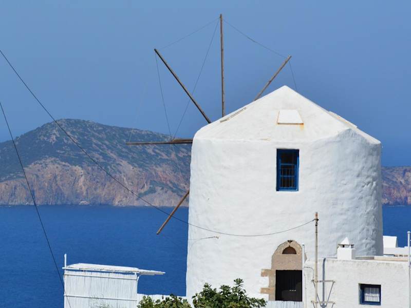 Nutzen Sie die Gelegenheit, die Umgebung des Milos Vaos Windmill zu erkunden. Besuchen Sie die nahegelegenen Dörfer und Sehenswürdigkeiten, darunter das Dorf Triovasalos und das antike Theater. Erkunden Sie die Strände und genießen Sie das kristallklare Wasser der Ägäis. Die Insel Milos bietet auch Möglichkeiten zum Wandern und bietet eine atemberaubende Landschaft, die es zu entdecken gilt.