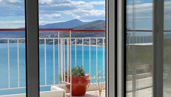 Das klimatisierte Apartment im Mimoza's Sea View Apartment verfügt über zwei gemütliche Schlafzimmer, in denen Sie sich nach einem erlebnisreichen Tag ausruhen können. Im Wohnzimmer können Sie entspannen und Ihre Lieblingssendungen auf dem Flachbild-TV genießen. Die voll ausgestattete Küche bietet Ihnen die Möglichkeit, Ihre eigenen Mahlzeiten zuzubereiten. Der Essbereich lädt zum gemeinsamen Essen ein. Handtücher und Bettwäsche werden im Apartment gestellt, damit Sie sich wie zu Hause fühlen können.