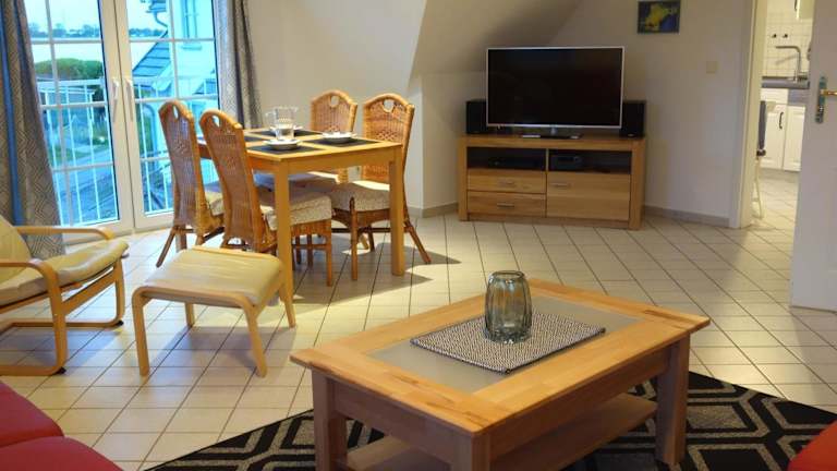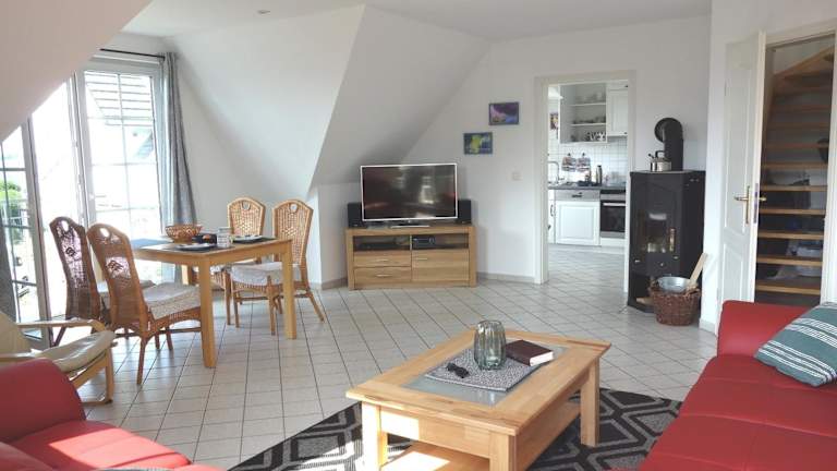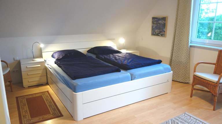 Die Ferienwohnung verfügt über zwei Schlafzimmer und ist mit einem Flachbild-TV sowie einer voll ausgestatteten Küche ausgestattet. Diese umfasst einen Kühlschrank, Geschirrspüler, Waschmaschine, Ofen und Mikrowelle.