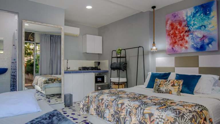 Das Mini departamento a una cuadra de la playa y de la bahia de Bocagrande bietet eine klimatisierte Ferienwohnung mit Gartenblick. Die Rezeption ist rund um die Uhr besetzt, und das Personal spricht Englisch und Spanisch. Es gibt kostenfreies WLAN und Privatparkplätze vor Ort.