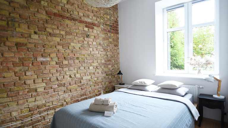 Die Wohnung besteht aus einem Schlafzimmer, einem Wohnzimmer und einer voll ausgestatteten Küchenzeile, die einen Kühlschrank und eine Kaffeemaschine beinhaltet. Das Badezimmer ist mit einer Dusche und kostenlosen Pflegeprodukten ausgestattet. Handtücher und Bettwäsche werden bereitgestellt, und die Zimmer sind schallisoliert.