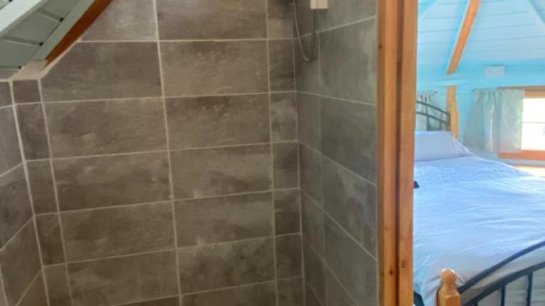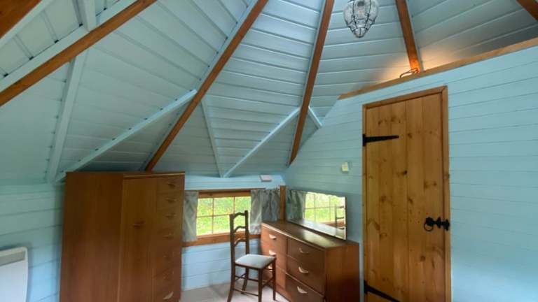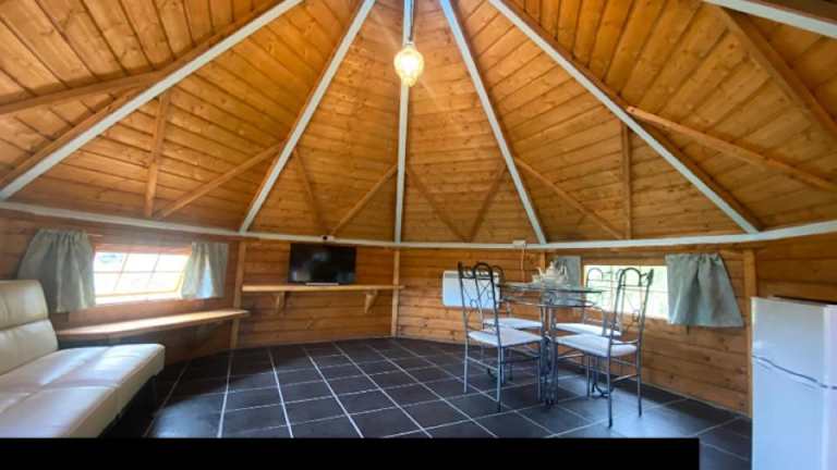 Das 1 Miniatur-Holz-Osthaus oder das separate Duck House bietet einen gemütlichen Rückzugsort mit Blick auf den Garten. Das Haus verfügt über eine gut ausgestattete Küche mit einem Kühlschrank, einem Backofen, einem Kochfeld und einem Wasserkocher. Hier können Sie Ihre eigenen Mahlzeiten zubereiten und die Annehmlichkeiten des Hauses genießen. Die Terrasse und der Grillbereich laden zum Entspannen und Genießen der Natur ein.