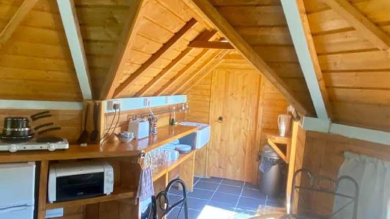 Das 1 Miniatur-Holz-Osthaus oder das separate Duck House bietet eine voll ausgestattete Küche, in der Sie Ihre eigenen Mahlzeiten zubereiten können. Alternativ können Sie auch in einem der nahegelegenen Restaurants speisen und die lokale Küche genießen.