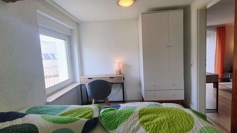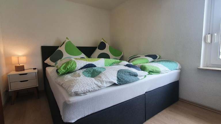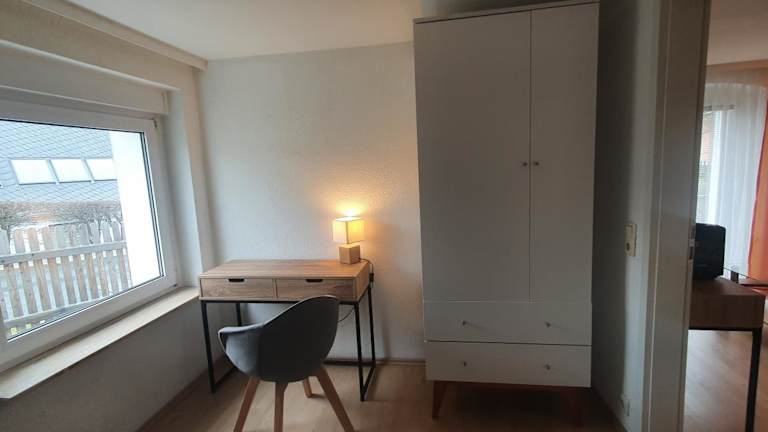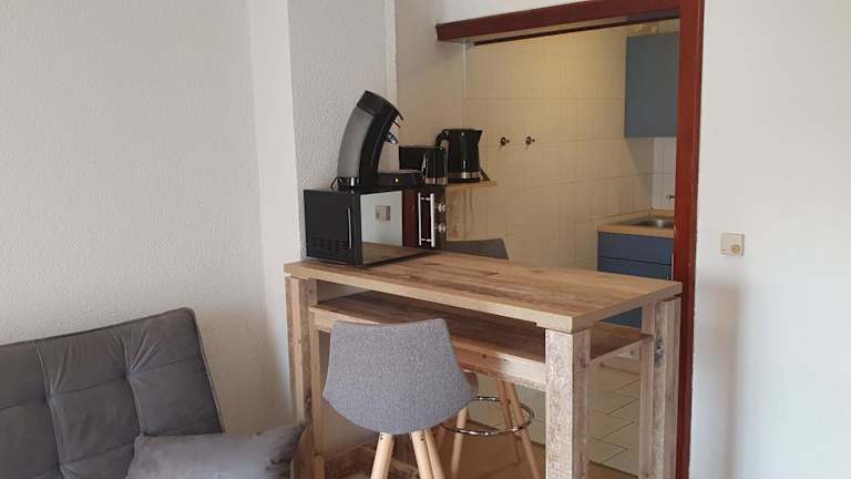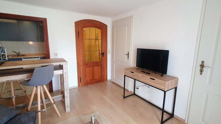 Die Ferienwohnung umfasst ein Schlafzimmer, ein Wohnzimmer und ein Badezimmer. Zur Ausstattung gehören ein Flachbild-TV, eine gut ausgestattete Küchenzeile mit Kühlschrank und Mikrowelle sowie Handtücher und Bettwäsche. In den Zimmern sind keine Haustiere erlaubt.
