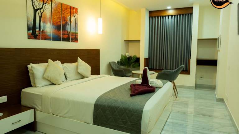 Das Miracle Hotel and Resorts befindet sich in Kozhikode, etwa 16 km vom Bahnhof Calicut entfernt. Die Lage des Resorts ermöglicht es den Gästen, die umliegenden Sehenswürdigkeiten wie die Thusharagiri-Wasserfälle und den Aussichtspunkt Lakkidi leicht zu erreichen. Der nahegelegene See Pookode ist ebenfalls einen Besuch wert. Der internationale Flughafen Calicut ist etwa 34 km entfernt und bietet eine bequeme Anreisemöglichkeit für internationale Gäste.