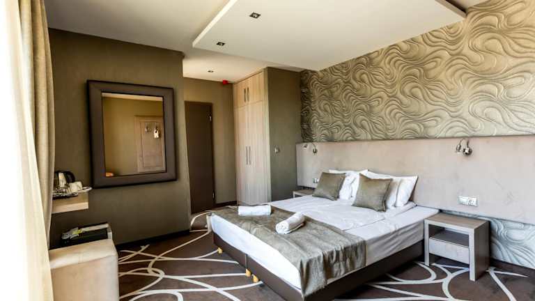 Die modernen Zimmer im Mirage Hotel Sárvár sind stilvoll eingerichtet und verfügen über Annehmlichkeiten wie eine Minibar und Kabel-TV. Gegen eine geringe Gebühr können Sie auch Bademäntel und Hausschuhe erhalten.