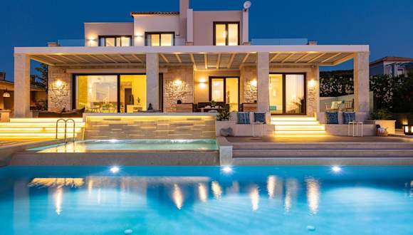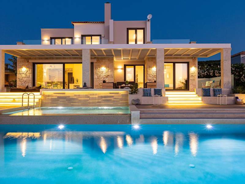 Die Unterkunft Miraida Exclusive Residence bietet Übernachtungsmöglichkeiten in einer geräumigen Villa mit vier Schlafzimmern und vier Badezimmern. Die Unterkunft ist mit kostenlosem WLAN, Klimaanlage und einem saisonalen Außenpool ausgestattet. Zu den weiteren Annehmlichkeiten zählen ein eigener Garten, ein kostenfreier Privatparkplatz sowie ein Whirlpools und ein Kinderspielplatz. Die Villa verfügt zudem über eine voll ausgestattete Küche, einen Essbereich und eine Terrasse mit Meerblick.