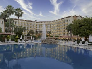 Im Außenbereich befindet sich Swimmingpool mit Sonnenterrasse. Liegen und Schirme erhalten Sie am Pool und am Strand kostenfrei. Der Wellness-Bereich : Entspannung pur in schönen Ambiente. Massage, Hamam, eine Sauna, ein perfekt ausgebildetes Team und viele andere Annehmlichkeiten warten auf Sie, um Sie vom Stress des Alltags zu befreien. Aquapark steht den Urlaubern zur Verfügung (stundenweise)