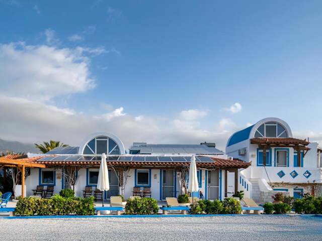 In der Umgebung des Hotels gibt es zahlreiche Freizeitmöglichkeiten. Der Strand von Myrtos ist ideal zum Schwimmen und Sonnenbaden. Die umliegende Landschaft lädt zu Wanderungen und Radtouren ein. Die nahe gelegene Stadt Ierapetra bietet zudem eine Vielzahl von Wassersportmöglichkeiten wie Tauchen und Schnorcheln.