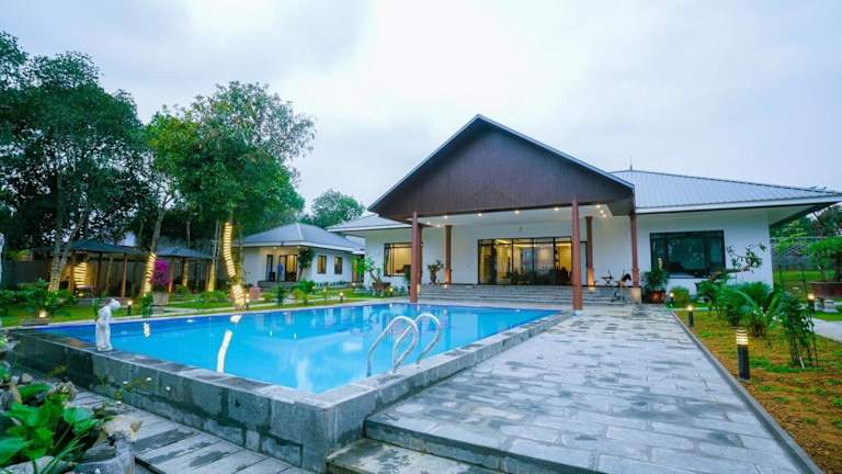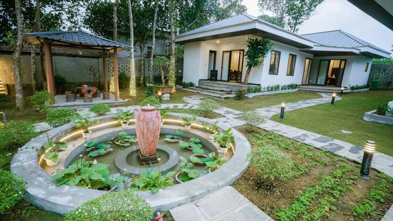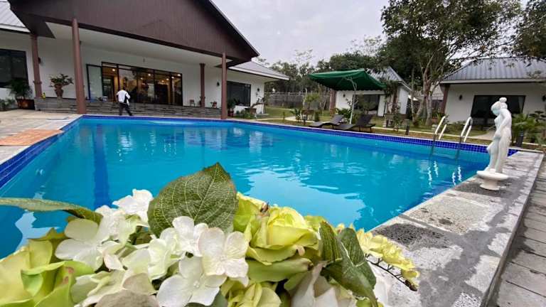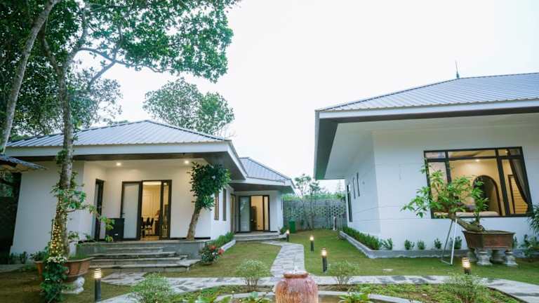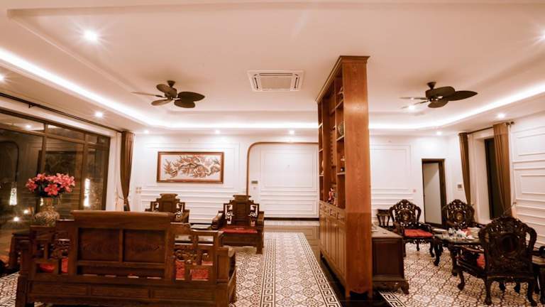 Die Mít Garden Villas Sơn Tây Venue Travel bieten eine günstige Lage in Sơn Tây und sind eine ideale Unterkunft für Reisende, die Ruhe und Erholung suchen. Die Villa verfügt über einen eigenen Pool und einen schönen Garten, in dem Sie entspannen können. Mit 6 Schlafzimmern und 5 Badezimmern bietet die Villa ausreichend Platz für große Gruppen oder Familien. Das kostenfreie WLAN und der Zimmerservice sorgen für zusätzlichen Komfort. In der Nähe der Villa gibt es verschiedene Sehenswürdigkeiten wie das Vietnam Museum of Ethnology und das Vietnam Fine Arts Museum. Der internationale Flughafen Hanoi ist ebenfalls gut erreichbar.
