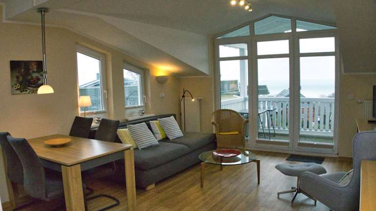 Die Ferienwohnung bietet Übernachtungsmöglichkeiten mit Meerblick und Zugang zu einem Balkon. Kostenfreies WLAN ist verfügbar und es sind kostenlose Privatparkplätze vorhanden. Die Unterkunft erlaubt die kostenlose Nutzung des AHOI Erlebnisbades und der Sauna in Sellin.