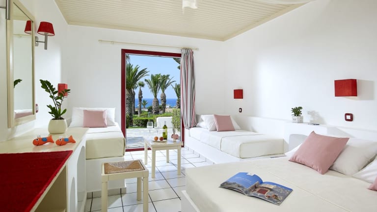 Willkommen im Mitsis Cretan Village Das luxuriöse 4* Ultra-All-Inclusive-24h-Resort direkt am Strand Erleben Sie den Charme des Mitsis Cretan Village, einem 4-Sterne Ultra-All-Inclusive-Resort, das direkt an einem wunderschönen Strand auf Kreta liegt und unvergessliche Familienferien bietet. Mit 344 komfortablen Zimmern verfügt das Hotel über 5 Außenpools, einen modernen Kinderclub, 4 Tennisplätze, Minigolf, ein Wassersportzentrum und vieles mehr. Gäste sind zudem herzlich eingeladen, im mehrfach ausgezeichneten Thalasso-Spa des benachbarten 5-Sterne-Hotels Mitsis Royal Mare pure Entspannung zu genießen. Ein mehrsprachiges Animationsteam organisiert den ganzen Tag über spannende Aktivitäten für alle Altersgruppen, sodass Unterhaltung garantiert ist. Ob Abenteuer oder Entspannung am Meer – das Mitsis Cretan Village ist der ideale Ort, um unvergessliche Urlaubserinnerungen zu schaffen. Kostenloser Flughafentransfer bei Online-Buchungen über www.mitsis.com (Mindestaufenthalt 7 Nächte & Mindestbuchungswert 1.000 €). Entfernungen Stadt Heraklion: 25 km, Internationaler Flughafen Heraklion: 23 km, Limenas Hersonissou: 2 km, Strand: 100 m