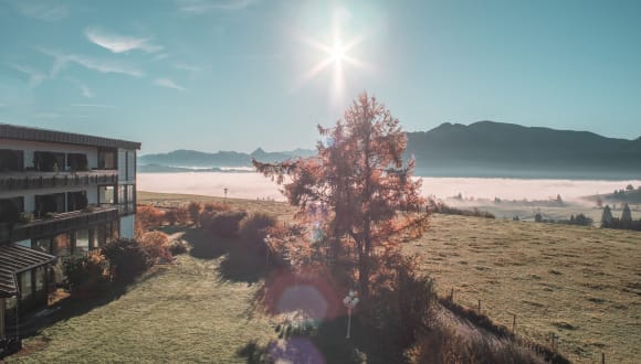 Herzlich willkommen im Hotel Mittelburg, dein Wellnesshotel im Allgäu. Unser Berghotel auf 1000 Metern über dem Meer bietet dir einen freien Blick auf die weiten alpinen Wiesen und das Allgäuer Alpen Panorama. Umgeben von zahlreichen Badeseen, Bergseen, Weihern und Bächen und zwischen Füssen, Oberstdorf und Oberstaufen gelegen, sind wir der ideale Ausgangspunkt für Radtouren und Bergtouren, egal ob Sommer oder Winter in die bayrische Bergwelt. In den 28 Hotelzimmern, Juniorsuiten und Suiten in alpinem Stil mit Süd Balkonen genießt du den traumhaften Ausblick vom Grünten bis zur Zugspitze. Dazu gibt es die besondere Kulinarik der Mittelburg. Nah an der Region und doch offen für die Welt. Traditionell und verwurzelt mit dem Allgäu und doch neu gedacht. Finde deinen Lieblingsplatz im familiengeführten 4-Sterne Wellnesshotel in Oy-Mittelberg. Lassen Sie sich einfach von uns verwöhnen. Wir freuen uns auf Sie! Ihre Familie Mayr mit Team