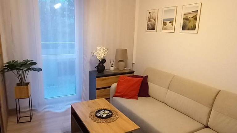 Das MK Apartament IV besteht aus einem gemütlichen Schlafzimmer, einem geräumigen Wohnzimmer und einer voll ausgestatteten Küche. In der Küche finden Sie einen Kühlschrank und eine Kaffeemaschine, so dass Sie sich bequem Ihre eigenen Mahlzeiten zubereiten können. Das Apartment verfügt auch über ein eigenes Badezimmer mit Dusche und kostenlosen Pflegeprodukten. Handtücher und Bettwäsche werden Ihnen zur Verfügung gestellt, so dass Sie sich um nichts kümmern müssen.