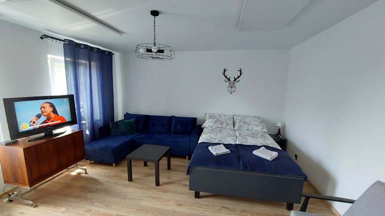 Die Unterkunft bietet ein Zimmer mit einem Wohnzimmer, das mit einem Flachbild-TV ausgestattet ist. Eine komplett eingerichtete Küche mit Kühlschrank ist ebenfalls vorhanden. Handtücher und Bettwäsche können gegen Aufpreis bereitgestellt werden. Die Unterkunft bietet auch Internetzugang, Heizung und Privatparkplatz. Es handelt sich um Nichtraucherzimmer, und die Unterkunft ist familienfreundlich.
