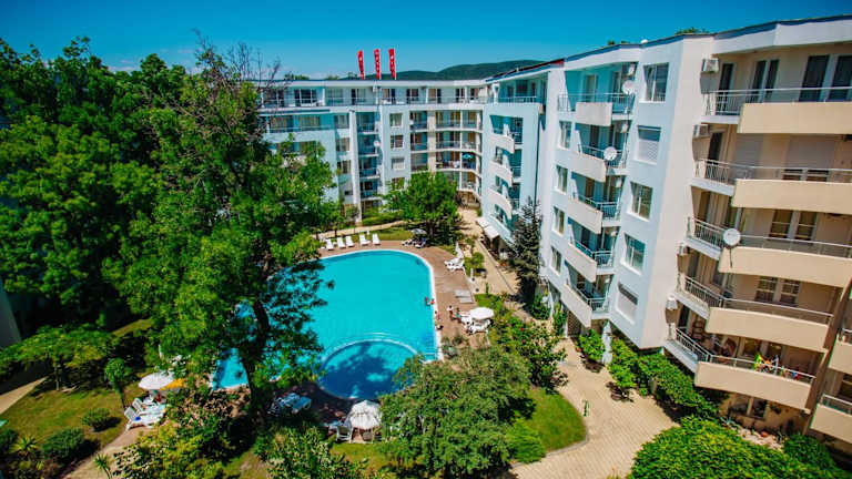 Die MNG Holiday Yassen Apartments befinden sich in Sunny Beach und bieten eine ideale Lage für einen erholsamen Urlaub. In unmittelbarer Nähe finden Sie den Sonnenstrand, einen der beliebtesten Strände an der bulgarischen Schwarzmeerküste. Der Action AquaPark und das Casino Kuban sind ebenfalls in der Nähe und bieten Unterhaltungsmöglichkeiten für die ganze Familie. Der Flughafen Burgas ist nur 30 km entfernt, was die Anreise zum Hotel sehr bequem macht.