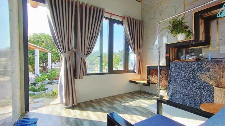 Entdecken Sie das Mơ Homestay Kê Gà (Mer Bleue Homestay) in Ke Ga, eine charmante Unterkunft mit einem schönen Garten und einer Terrasse. Hier können Sie Ihren Urlaub inmitten der Natur genießen und sich in der Nähe des Strandes und des Leuchtturms von Ke Ga entspannen. Das Ferienhaus bietet Ihnen komfortable Zimmer, eine voll ausgestattete Küche und kostenfreies WLAN. Kostenfreie Privatparkplätze stehen ebenfalls zur Verfügung.