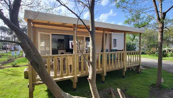 Mobil-home 5 pers climatisé - Plage et forêt - Camping Les Oyats Seignosse bietet Übernachtungsmöglichkeiten mit Gartenblick. Die Unterkunft umfasst einen Garten, eine Terrasse sowie ein Restaurant und eine Bar. Zudem verfügt die Unterkunft über einen Wasserpark und eine Snackbar. Es sind unterschiedliche Freizeitmöglichkeiten vorhanden.