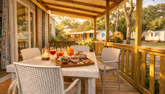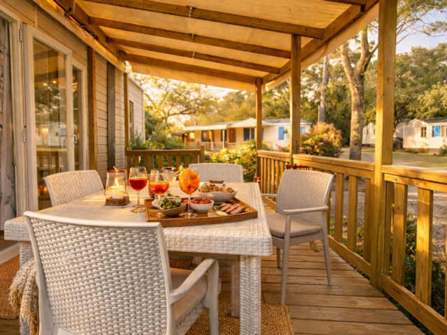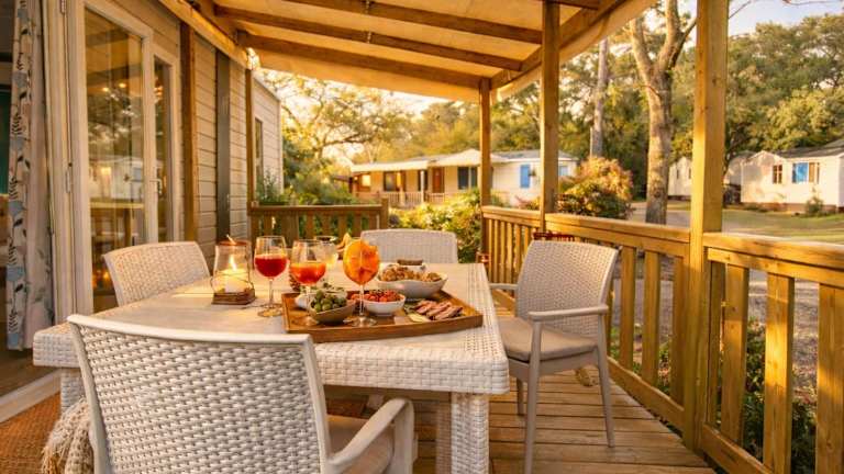 Mobil-home 5 pers climatisé - Plage et forêt - Camping Les Oyats Seignosse bietet Übernachtungsmöglichkeiten mit Gartenblick. Die Unterkunft umfasst einen Garten, eine Terrasse sowie ein Restaurant und eine Bar. Zudem verfügt die Unterkunft über einen Wasserpark und eine Snackbar. Es sind unterschiedliche Freizeitmöglichkeiten vorhanden.