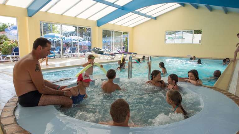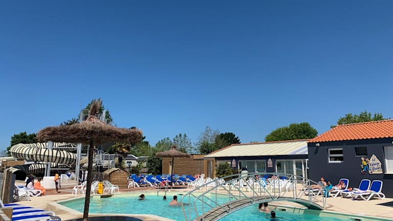 Das Mobil Home XXL 4 chambres - Camping La Bolée d'Air bietet eine angenehme Atmosphäre mit einem saisonalen Außenpool, einem Innenpool, einem Garten sowie einer Bar. Die Unterkunft ist für den Aufenthalt von Familien geeignet und verfügt über eine Terrasse.