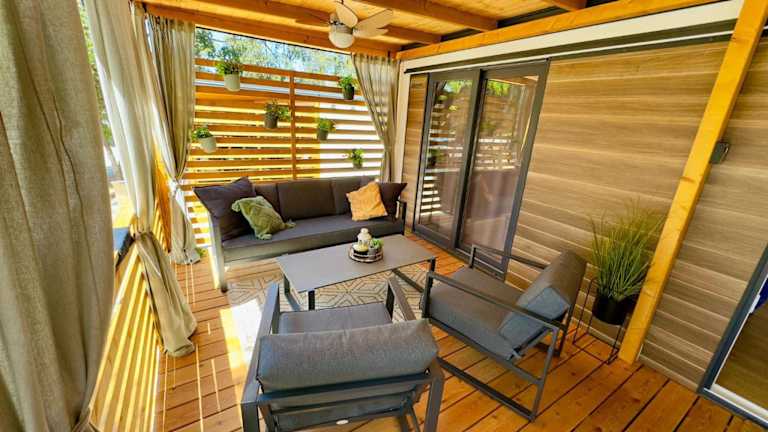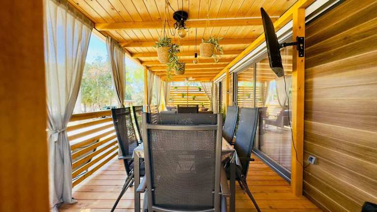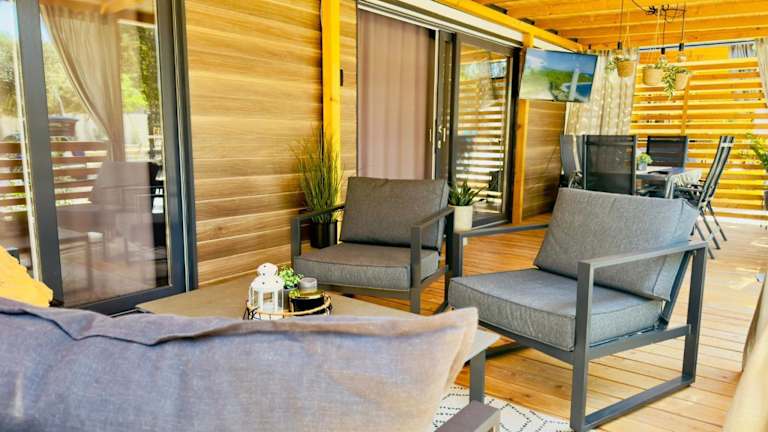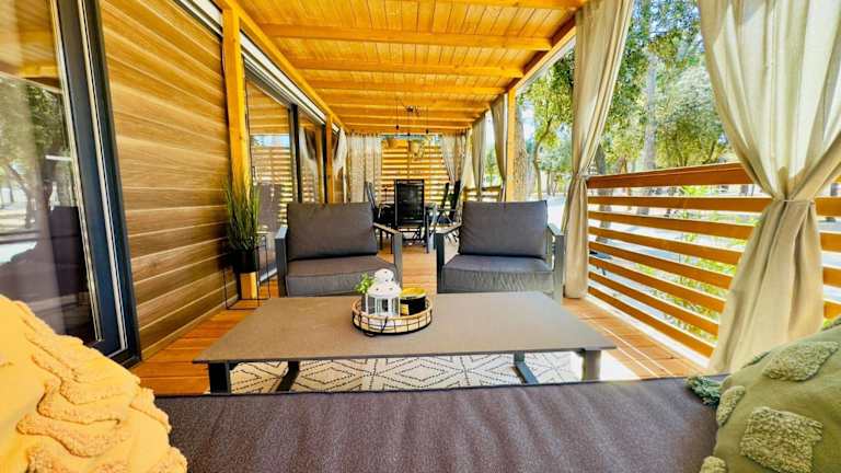 Die Unterkünfte im Mobile Home Ana - Camp Soline Biograd verfügen über kostenfreies WLAN, einen Sitzbereich und einen Flachbild-Sat-TV. Die voll ausgestattete Küche enthält einen Kühlschrank, einen Backofen, eine Mikrowelle, ein Kochfeld, einen Toaster, eine Kaffeemaschine und einen Wasserkocher. Das private Badezimmer ist mit einer Dusche und einem Haartrockner ausgestattet. Genießen Sie den Gartenblick von Ihrer Terrasse aus.