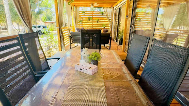Das Mobile Home Ana - Camp Soline Biograd in Biograd na Moru bietet komfortable Unterkünfte in der Nähe des Strandes Soline. Mit kostenfreiem WLAN, einem Kinderspielplatz und einem Garten ist es der ideale Ort für einen entspannten Urlaub. Die voll ausgestattete Küche und das private Badezimmer sorgen für zusätzlichen Komfort. Erkunden Sie die Umgebung mit dem Fahrrad und genießen Sie die nahegelegenen Strände.