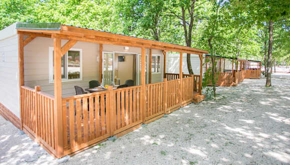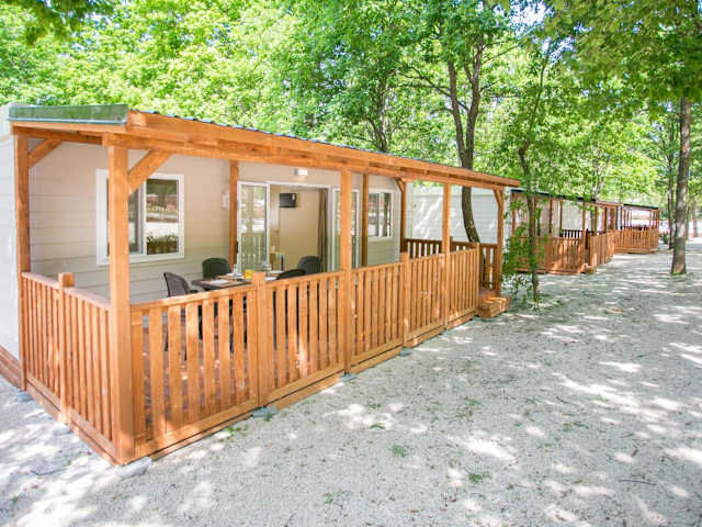 Die Mobile homes Premium MAGNOLIA Bijela Uvala besteht aus einem klimatisierten Ferienhaus, das über zwei Schlafzimmer und ein Wohnzimmer verfügt. Eine voll ausgestattete Küchenzeile mit Kühlschrank und Kaffeemaschine ist ebenfalls vorhanden. Die Unterkunft hat zwei Badezimmer mit Duschen. Handtücher und Bettwäsche werden bereitgestellt, und es gibt Zugriff auf eine Veranda oder Terrasse. WLAN ist kostenlos zugänglich.