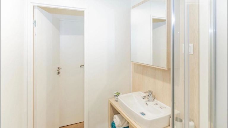 Das Apartment im Erdgeschoss des Mobilheims Murnersee Haus 5 verfügt über 2 Schlafzimmer, eine gut ausgestattete Küche mit einem Kühlschrank und einem Backofen sowie ein gemütliches Wohnzimmer mit einem Flachbild-TV. Handtücher und Bettwäsche werden gestellt, um Ihren Aufenthalt so angenehm wie möglich zu gestalten.