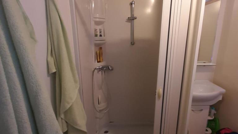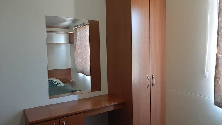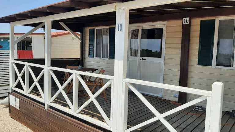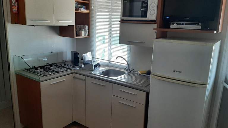 Das Mobilhome verfügt über zwei Schlafzimmer und bietet eine Klimaanlage. Zur Ausstattung gehören ein Satelliten-Flachbild-TV sowie eine voll ausgestattete Küche, die mit einem Kühlschrank und einem Ofen ausgestattet ist. Die Unterkunft bietet zudem eine Terrasse und ist für Familien geeignet.