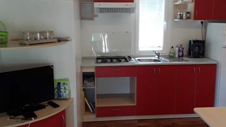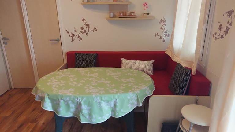 Die Wohneinheiten der Mobilhome Privlaka sind klimatisiert und verfügen über eine ausgestattete Küche mit Kühlschrank, ein Wohnzimmer mit Schlafsofa und TV sowie ein eigenes Badezimmer. Die Unterkünfte bieten zudem Sitzbereiche und Essbereiche.