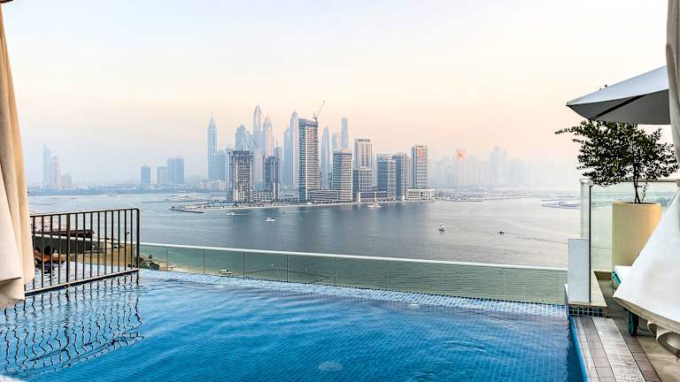 Modern 1BR Seven Palm Private Beach Infinity Pool