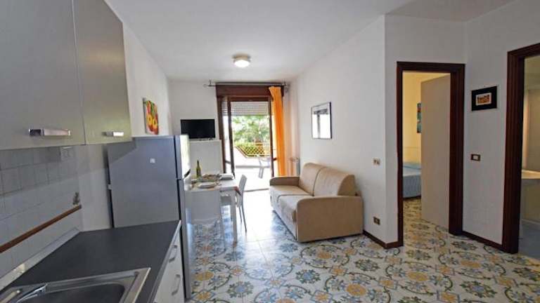 Die Wohneinheiten umfassen einen Balkon, eine gut ausgestattete Küche mit Kühlschrank und Ofen sowie ein eigenes Badezimmer mit Bidet.