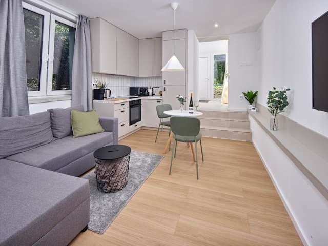 Die Ferienwohnung verfügt über 1 Schlafzimmer, ein Wohnzimmer und eine voll ausgestattete Küche mit Kühlschrank und Kaffeemaschine. Ein Badezimmer mit Dusche und kostenlosen Pflegeprodukten ist ebenfalls vorhanden. Handtücher und Bettwäsche werden bereitgestellt.