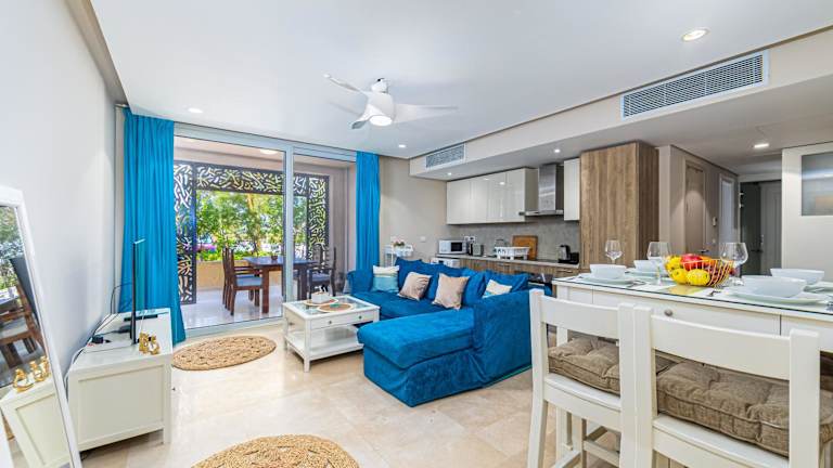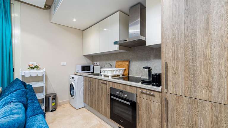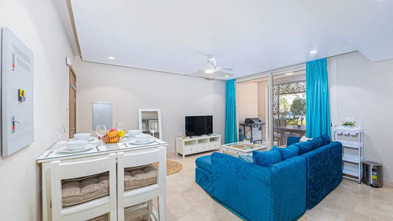 Das Apartment ist mit 2 Schlafzimmern und 1 Badezimmer ausgestattet. Zur Einrichtung gehören Bettwäsche, Handtücher und ein Flachbild-TV. Die voll ausgestattete Küche bietet allen Komfort, während die Terrasse zusätzlichen Platz im Freien bereitstellt.
