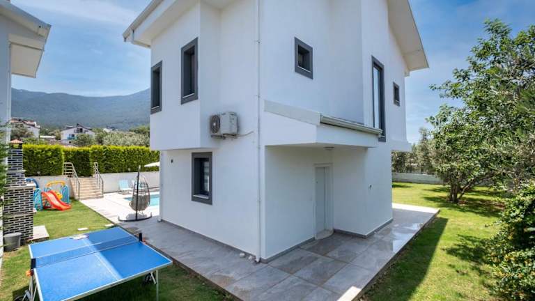 Die moderne neu erbaute Villa mit 4 Schlafzimmern, Pool und Garten im Zentrum von Hisaronu in Fethiye ist der perfekte Ort für einen entspannten und luxuriösen Urlaub. Mit einem eigenen Pool, Grillmöglichkeiten und kostenfreien Privatparkplätzen bietet die Villa alle Annehmlichkeiten, die man sich wünschen kann. Die Zimmer sind modern eingerichtet und mit einer voll ausgestatteten Küche, einem Flachbild-TV und 5 Badezimmern ausgestattet. Genießen Sie den Stadtblick und entspannen Sie im Außenpool oder auf der Terrasse. Die Villa bietet auch die Möglichkeit, ein Auto zu mieten, um die Umgebung zu erkunden. Der Yachthafen Fethiye und der Yachthafen Ece Saray sind nur eine kurze Fahrt entfernt. Der Flughafen Dalaman ist ebenfalls gut erreichbar.
