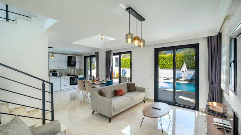 Die Villa befindet sich im Zentrum von Hisaronu in Fethiye und bietet eine günstige Lage, um die Umgebung zu erkunden. In der Nähe finden Sie verschiedene Restaurants, Bars und Geschäfte. Der Yachthafen Fethiye und der Yachthafen Ece Saray sind nur 11 km entfernt, so dass Sie leicht einen Ausflug dorthin unternehmen können. Der Flughafen Dalaman ist ebenfalls gut erreichbar und bietet eine bequeme Anreisemöglichkeit.