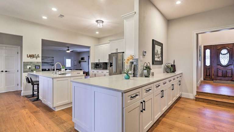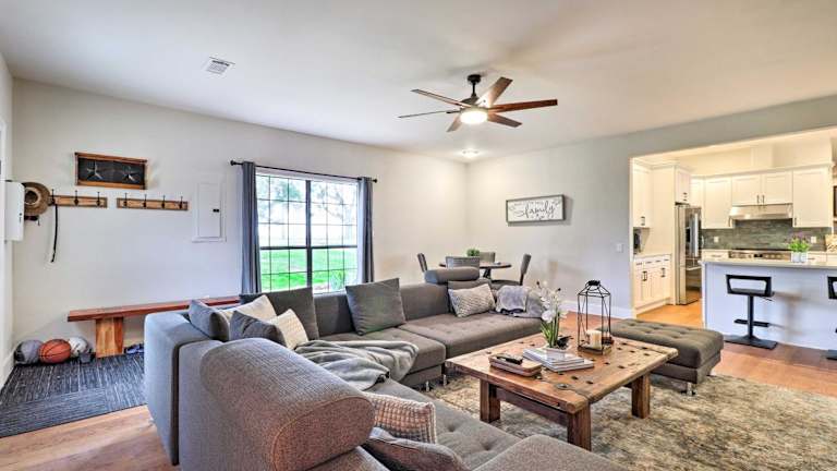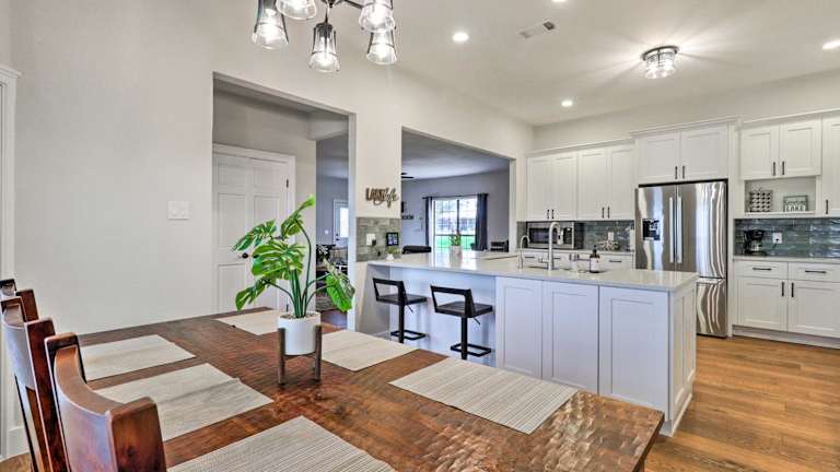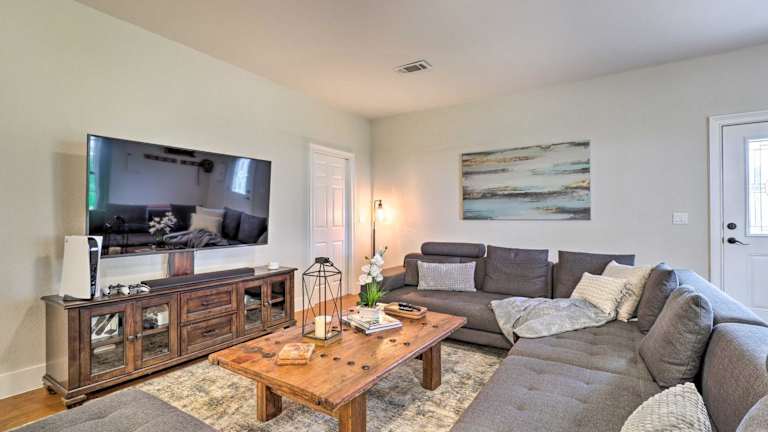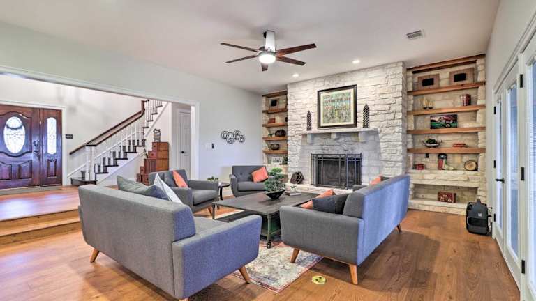 Das Modern Farmhouse with Stunning Views and Hot Tub! befindet sich in Granger, in der Nähe von beliebten Attraktionen wie dem Dell Diamond, dem Round Rock Express und dem Golf Club at Star Ranch. Sie können auch das Rock n River Family Aquatic Center und den Forest Creek Golf Club besuchen. Die Umgebung bietet viele Möglichkeiten für Outdoor-Aktivitäten und Erholung.
