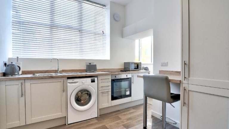 Das Modern new redeveloped studio Apartment in Clacton ist eine modernisierte Ferienwohnung, die über ein Schlafzimmer, ein Wohnzimmer und eine voll ausgestattete Küche verfügt. Die Unterkunft bietet eine komfortable Atmosphäre für Gäste.