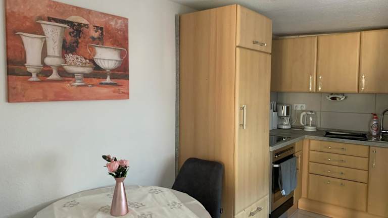 In der voll ausgestatteten Küche der Wohnung können Sie Ihre eigenen Mahlzeiten zubereiten und sich wie zu Hause fühlen. Alternativ gibt es in der Umgebung auch Restaurants und Cafés, in denen Sie lokale Spezialitäten und internationale Küche genießen können.