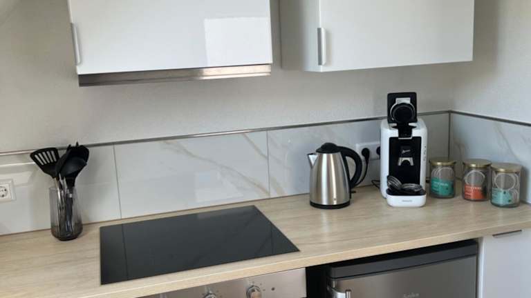 Die Ferienwohnung besteht aus einem Schlafzimmer, einem Wohnzimmer und einer voll ausgestatteten Küche, die mit Kühlschrank und Kaffeemaschine ausgestattet ist. Im Badezimmer befinden sich eine Dusche und kostenlose Pflegeprodukte. Handtücher und Bettwäsche werden bereitgestellt.