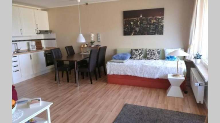 Die Wohnung besteht aus einem Schlafzimmer, einem Wohnzimmer mit Flachbild-TV, einer gut ausgestatteten Küche (Kühlschrank, Ofen) und einem Badezimmer mit Badewanne. Ein Balkon und eine Terrasse mit Gartenblick sind vorhanden. Bettwäsche und Handtücher sind nicht im Preis inbegriffen und können gegen Gebühren ausgeliehen werden.