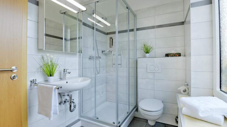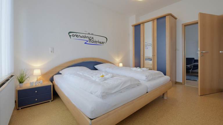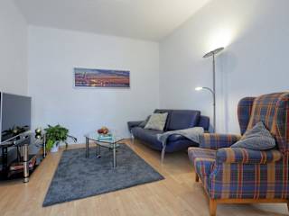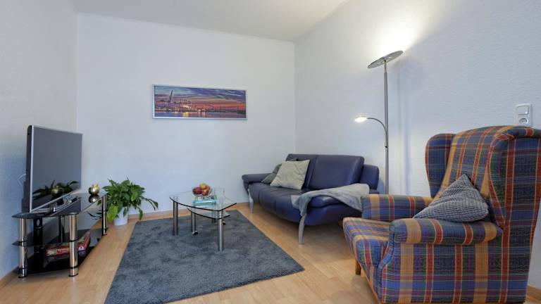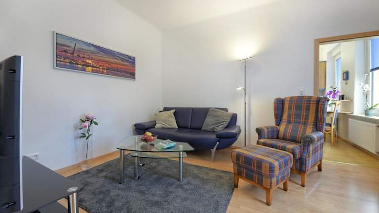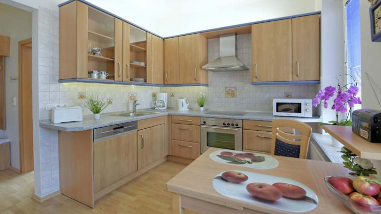 Die Ferienwohnung besteht aus einem Schlafzimmer, einem Wohnzimmer, einer voll ausgestatteten Küche mit Kühlschrank und Kaffeemaschine sowie zwei Badezimmern mit Dusche und Haartrockner. Handtücher und Bettwäsche sind vorhanden.