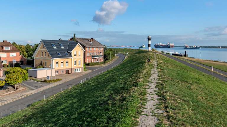 Die Unterkunft befindet sich in Twielenfleth, direkt am Elbdeich.