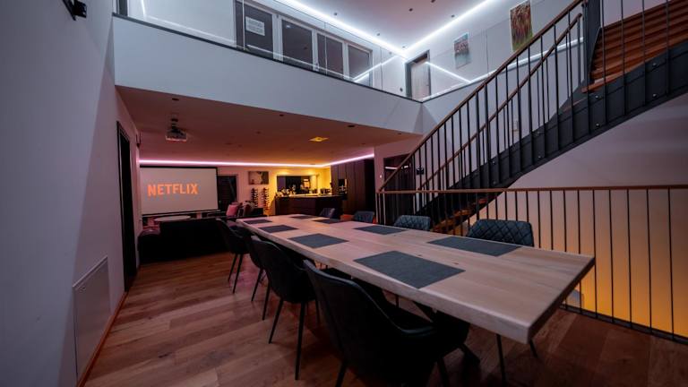 Die Moderne Villa mit Whirlpool und Heimkino bietet verschiedene Annehmlichkeiten wie eine Gemeinschaftslounge, eine Terrasse und eine Gemeinschaftsküche. Zudem steht ein kostenloser Privatparkplatz zur Verfügung.